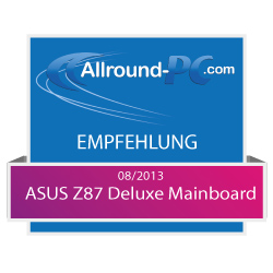 Wer sich von dem recht hohen Preis von knapp 250 Euro nicht abschrecken lässt, erhält mit dem Asus Z87 Deluxe ein leistungsstarkes Mainboard, das zudem eine Menge Anschlüsse parat hält, und dank der Quad-SLI und Quad-CrossFireX-Technologie bis zu vier Gra...